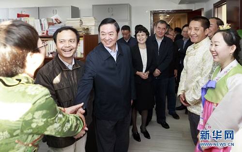 中共中央政治局委員、中央書記處書記、中宣部部長劉奇葆到作家出版集團調(diào)研文學(xué)期刊發(fā)展情況。 新華社記者丁海濤攝
