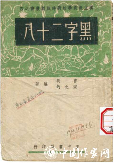 《黑字二十八》為曹禺、宋之的所著戲劇。1940年3月初版。正中書局印行。國(guó)立戲劇學(xué)?!稇?zhàn)時(shí)戲劇叢書》之四。