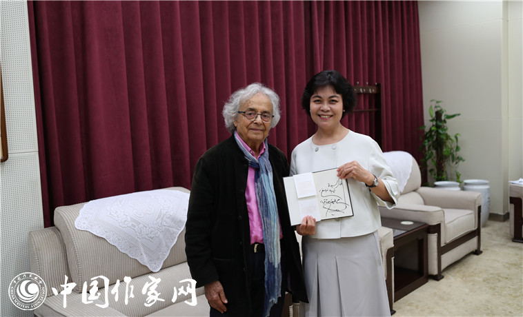 參加國(guó)際寫(xiě)作計(jì)劃的敘利亞詩(shī)人阿多尼斯向中國(guó)作協(xié)主席鐵凝贈(zèng)送了自己的詩(shī)集