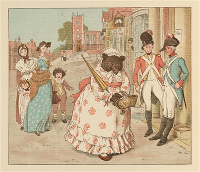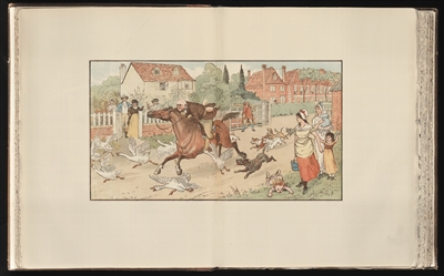 全彩插畫,出自圖畫書《約翰·吉爾品趣事》(1878年),“凱迪克圖畫書獎”的標(biāo)志就是根據(jù)這幅圖畫設(shè)計而成。