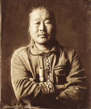使鹿鄂溫克人彌足珍貴的面孔通過(guò)大畫(huà)幅相機(jī)和黑白膠片進(jìn)行拍攝后,利用現(xiàn)代數(shù)字影像技術(shù)對(duì)底片進(jìn)行掃描、輸出,最后再利用早期古典濕版攝影術(shù)翻拍,最終將這一民族肖像緩慢定格在錫板的感光乳劑藥膜上。由于古典濕版攝影術(shù)中感光材料的不確定性和成像的緩慢過(guò)程,使得作品中的人物肖像具有了獨(dú)特的美感和歷史的厚重感。
