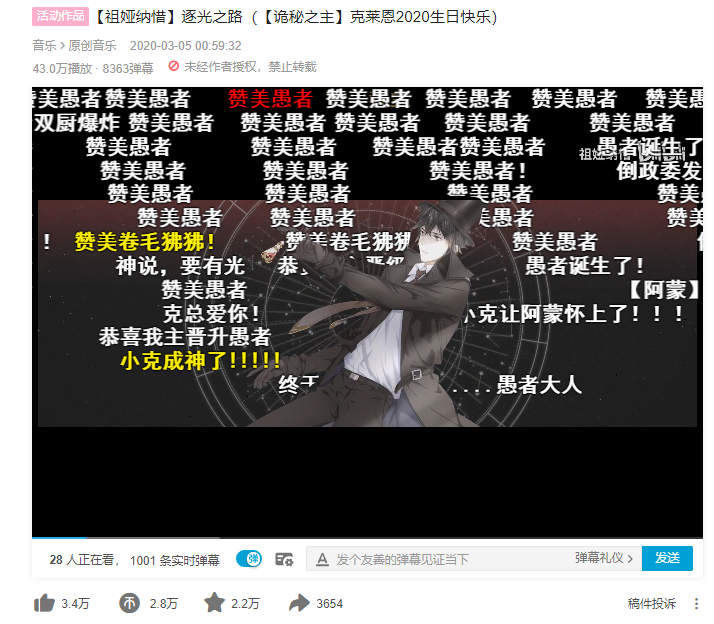 (粉絲為主角克萊恩慶生制作了同人歌曲,該作品在B站擁有43萬(wàn)點(diǎn)擊)