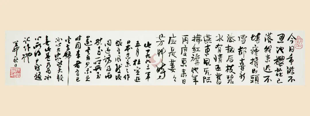 沈尹默傳世書法作品以行書居多,此條幅前半部分具章草風(fēng)格。