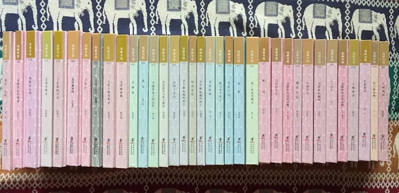 另一種與南大社瘦版小精裝一樣,對本土小開文化有創(chuàng)新和發(fā)展,我個人持正面評價的變體小精裝文庫,是“海豚書館”。這個文庫也是沈公退休后,與俞曉群、陸灝“談情說愛”、搞事情的成果。十年前,俞曉群從遼版集團老總的位上榮退,轉(zhuǎn)戰(zhàn)京城,受聘于海豚社,遂成了這個項目的實操者。此文庫“致力于文化普及的長遠出版工程”,按內(nèi)容,分成六種顏色,分別為藍系(海外文學(xué))、紅系(文學(xué)拾遺)、橙系(文學(xué)原創(chuàng))、綠系(學(xué)術(shù)鉤沉)、灰系(學(xué)術(shù)原創(chuàng))和紫系(翻譯小品)。一般來說,學(xué)術(shù)出版不碰文學(xué)原創(chuàng),是通例,可“豚館”卻連原創(chuàng)帶翻譯,與學(xué)術(shù)“一勺燴”,給人的感覺是野心好大。不過,俞總出手,必是大手筆,早已是業(yè)界共識,我當(dāng)然也不懷疑。反正他們一邊出,我一邊收就是。統(tǒng)共除了多少種,包括何時被打上了休止符,我都不大清楚。自己手里各種色系,計有三十五種,且頗有幾種難得的資料。