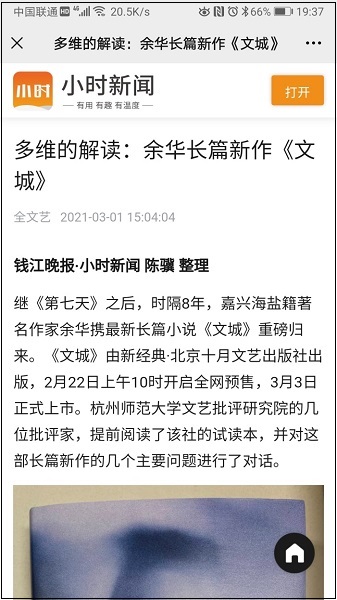 3月1日,錢江晚報(bào)新媒體小時(shí)新聞發(fā)布一組筆談《多維的解讀:余華長(zhǎng)篇新作<文城>》,杭州師大文藝批評(píng)研究院洪治綱、郭洪雷、王侃、邵寧寧、詹玲、劉楊等幾位老師在筆談中對(duì)《文城》進(jìn)行了討論。