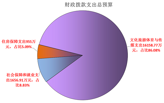 文化旅游體育與傳媒支出(類)支出10918.00萬(wàn)元,占比82.20%;社會(huì)保障和就業(yè)支出(類)支出1409.68萬(wàn)元,占比10.61%;住房保障支出(類)支出955.00萬(wàn)元,占比7.19%。