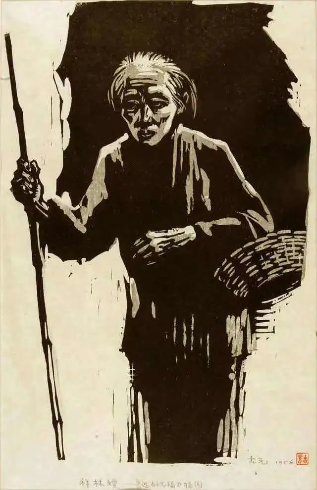 祥林嫂,魯迅《祝?!凡鍒D,古元木刻版畫,1956年