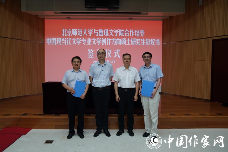 7月5日,北京師范大學(xué)與魯迅文學(xué)院合作培養(yǎng)中國現(xiàn)當(dāng)代文學(xué)專業(yè)文學(xué)創(chuàng)作方向碩士研究生協(xié)議書簽約儀式在京舉行。中國作協(xié)黨組成員、副主席吳義勤,北京師范大學(xué)副校長康震,魯迅文學(xué)院常務(wù)副院長徐可,北京師范大學(xué)文學(xué)院院長王立軍等參加簽約儀式。儀式由魯迅文學(xué)院副院長李東華主持。