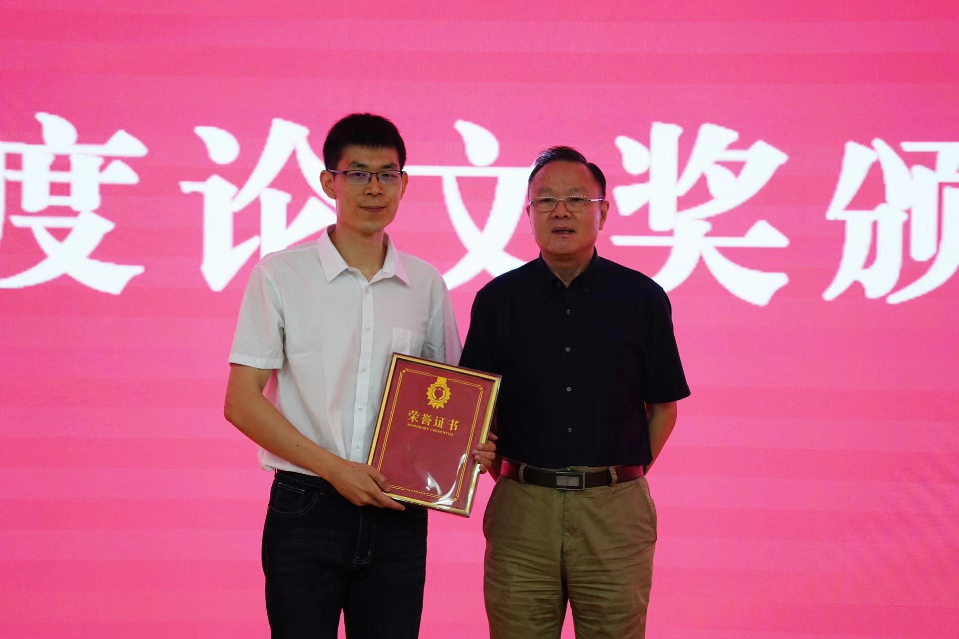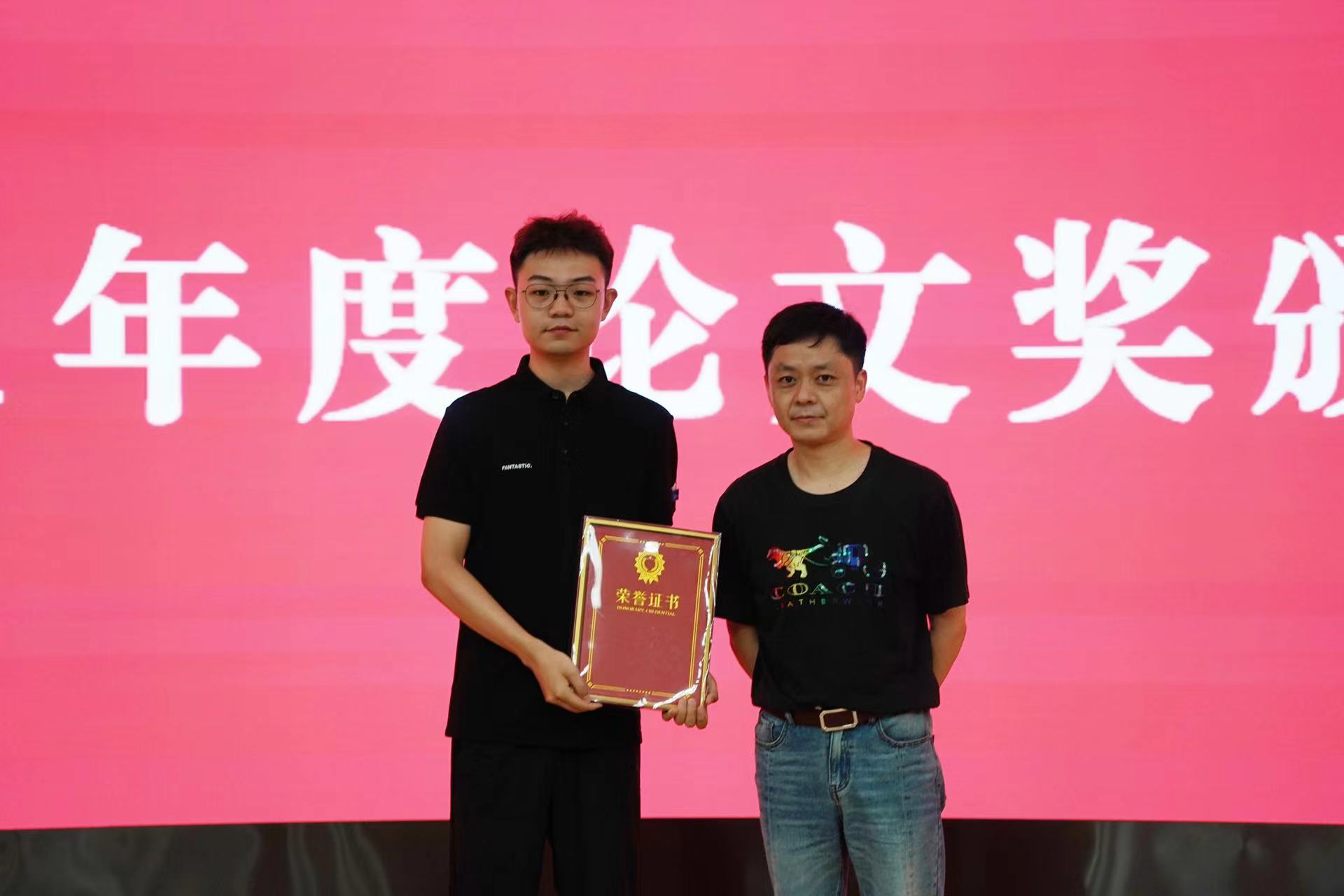 中國人民大學文學院教授楊慶祥為北京大學在讀博士夏寅頒獎