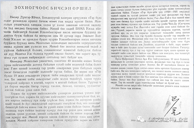 借助互譯器,我花費(fèi)一天時(shí)間用于掃描、校對(duì)和翻譯,幾經(jīng)推敲潤(rùn)色,才在深夜拿出這份序言譯文的初稿。初次翻譯這個(gè)小語(yǔ)種,我缺乏自信,又拜托《新文學(xué)史料》編輯部把關(guān)(她們找到一位精通蒙古文的學(xué)者照日格圖先生進(jìn)行校譯,增刪訂正)終于完成下面這篇譯稿。