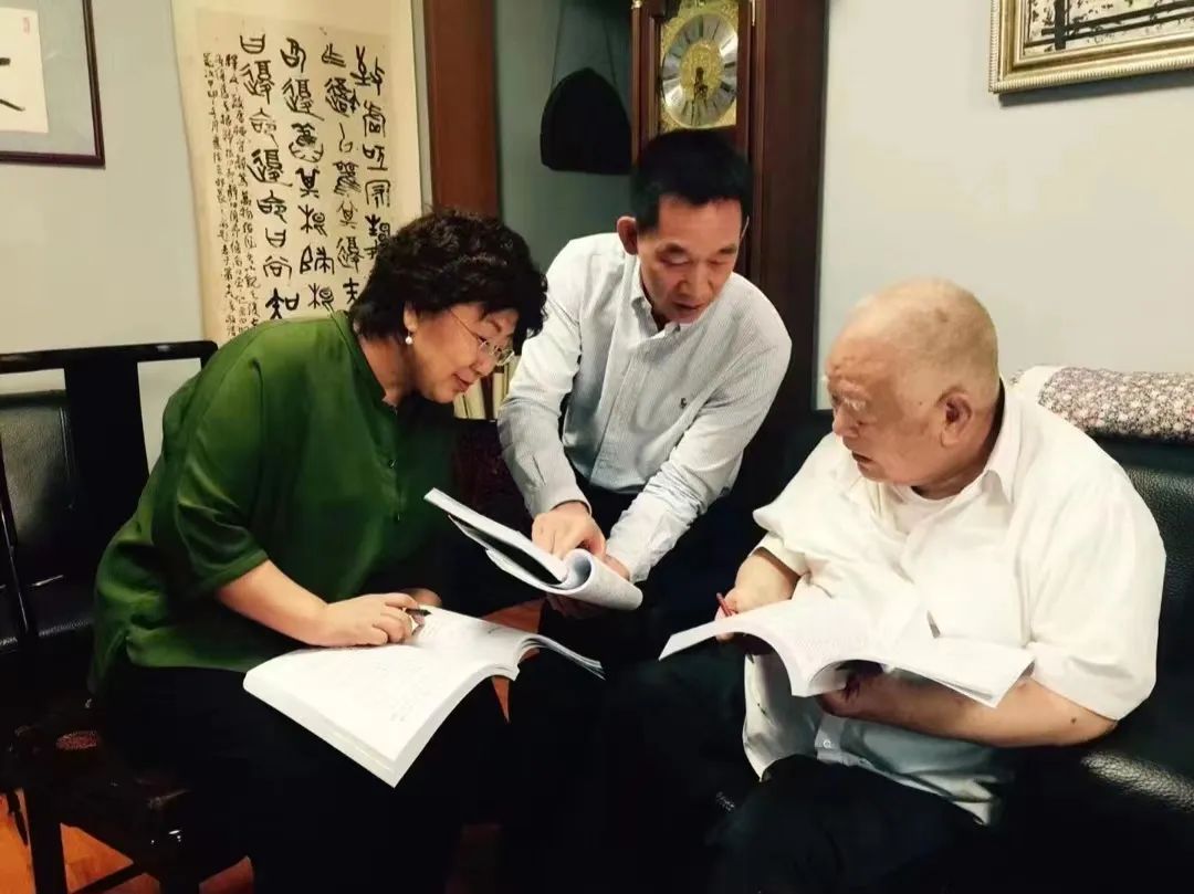 在徐懷中家中編校《牽風(fēng)記》,左起:徐坤、施戰(zhàn)軍、徐懷中