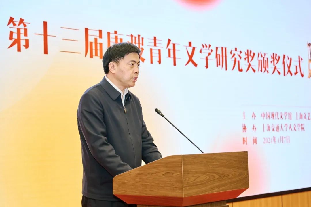 4月7日,由中國現(xiàn)代文學(xué)館、上海文藝出版社主辦,上海交通大學(xué)人文學(xué)院協(xié)辦的第十三屆唐弢青年文學(xué)研究獎(jiǎng)?lì)C獎(jiǎng)儀式在上海舉行。中國作協(xié)副主席、中國現(xiàn)代文學(xué)館館長李敬澤出席活動。上海市文聯(lián)副主席、作協(xié)副主席孫甘露,上海世紀(jì)出版集團(tuán)黨委副書記、總裁闞寧輝,上海市作協(xié)黨組書記、專職副主席馬文運(yùn),上海交通大學(xué)人文學(xué)院院長吳俊,復(fù)旦大學(xué)教授郜元寶、倪偉,華東師范大學(xué)教授呂新雨、中文系主任文貴良,上海交通大學(xué)教授張全之、張先飛,中國現(xiàn)代文學(xué)館副館長李宏偉,上海市委宣傳部出版處處長毛小曼,上海文藝出版社社長、總編輯畢勝以及30余位來自全國各地的學(xué)界代表參加活動?;顒佑芍袊F(xiàn)代文學(xué)館常務(wù)副館長王軍主持。