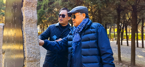 莫言與王振在河南安陽殷墟遺址碑林。圖片來源:兩塊磚墨訊