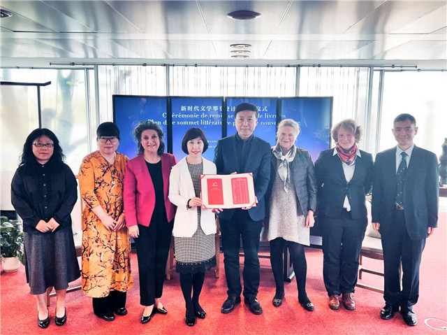 在法國巴黎中國文化中心舉辦的“新時代文學(xué)攀登計劃”贈書儀式上,中國圖書進(jìn)出口(集團(tuán))有限公司總經(jīng)理林麗穎向巴黎中國文化中心主任劉紅革贈送了“新時代文學(xué)攀登計劃”前三期已出版的作品,共24種、50冊。這些文學(xué)作品從不同側(cè)面為法國品讀新時代“書香中國”、感知中國式現(xiàn)代化搭建了新的平臺,對于促進(jìn)兩國人民間的相互理解和友誼具有重要的文化意義。