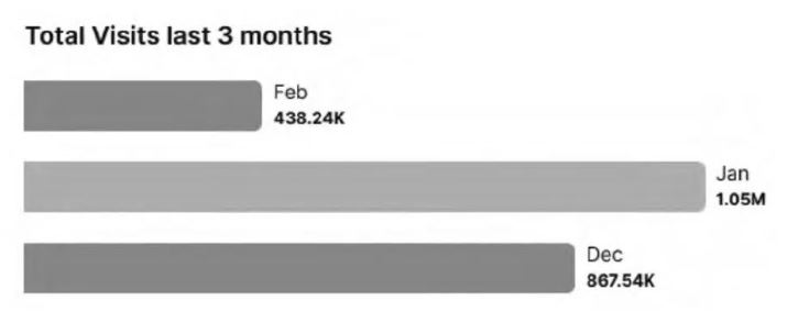 自2017年創(chuàng)立以來,元氣閱讀社區(qū)一直呈現出穩(wěn)步發(fā)展的態(tài)勢。網站流量分析平臺蘇姆雷士(SEMrush)統計與分析的數據顯示,從截至2024年3月的有機搜索流量來看,元氣閱讀社區(qū)的流量每月平均增長17.32%。[7]就具體訪問數量而言,蘇姆雷士于2024年3月公布了元氣閱讀社區(qū)過去3個月的總訪問量(見圖1),即2023年12月的訪問量為86.754萬次,2024年1月、2月分別為105萬次、43.824萬次,3個月的訪問總量高達230多萬次。就用戶停留時長而言,數據顯示,2024年2月元氣閱讀社區(qū)用戶平均持續(xù)使用時間為48分51秒。[8]以上數據表明,中國網文數字閱讀類產品目前在法國的傳播顯現出持續(xù)、高頻、穩(wěn)步提升的良好形勢。
