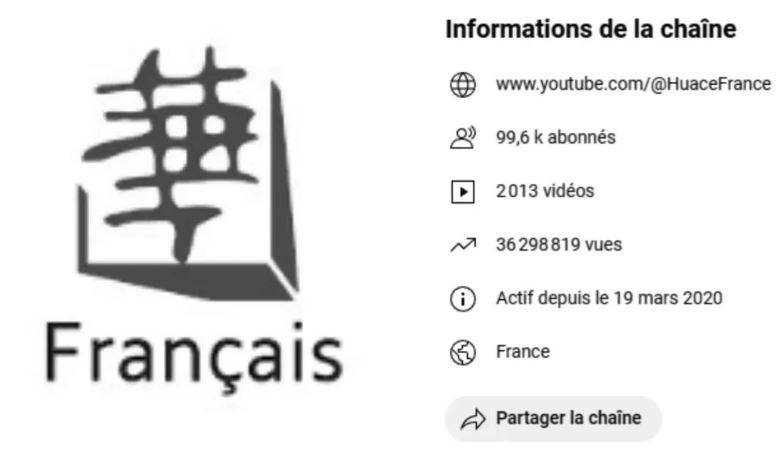 圖2 華策集團在優(yōu)兔網法語頻道開設的官方賬戶截圖