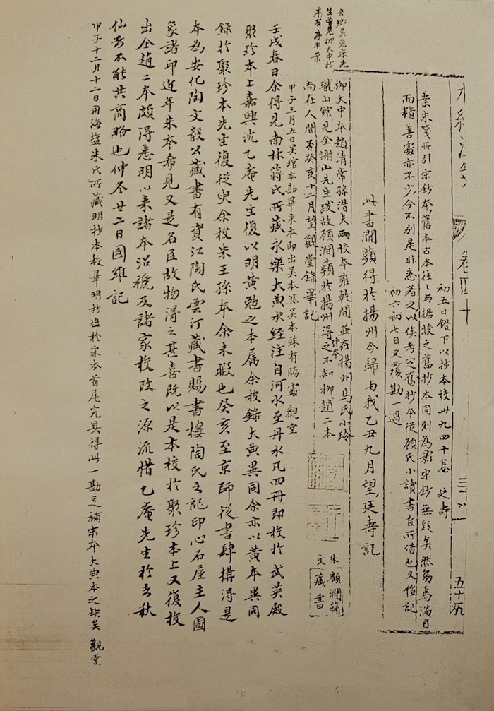 浙江教育出版社2010年版《王國維全集》第十二、十三兩冊(cè),收錄《水經(jīng)注?!返恼肀荆鶕?jù)的是吉林大學(xué)圖書館收藏的王國維手校本《水經(jīng)注箋》,各卷之末有校勘題記。該書卷四十末的題記最為完整:“甲子十二月十二日,用海鹽朱氏所藏明抄本校畢。明抄出于宋本,首尾完具,得此一勘,足補(bǔ)宋本、《大典》本之缺矣。觀堂?!钡缭诔跗呷眨ň砦孱}記),王國維已做出相同的判斷:“甲子十二月初七日,假得明抄本校此二卷。明抄行款與宋本同,當(dāng)自宋本出也。永觀又記?!贝诵胖饕虼丝梢陨纤莸酵鯂S初校的前幾日,而不必在全書校畢之后。