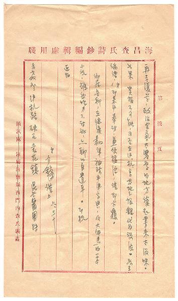 接獲來書,欣慰無已,把晤匪遙,良可喜也。弟至內(nèi)地后,曾考取聯(lián)大、中大、政校諸校,以政校費用較省,故在該校之外交系就讀三年,去歲因應(yīng)考譯員而休學(xué),曾在重慶與諸友人創(chuàng)一太平洋出版社,辦一個太平洋雜志(由弟任編輯),雖只出了三期,現(xiàn)在看看也頗幼稚,只是當時大家情緒好,倒也很開心。現(xiàn)在很想到新聞界來服務(wù),未知能加入貴報工作否,可否請先生鼎力紹介。職位待遇在所不計,最好是內(nèi)勤的,因為白天還有利用多讀點書,政校弟不想再去復(fù)學(xué),政治空氣太濃厚的地方讀起書來太沒味。如果貴報不可能,可否在滬、杭、京等地之報館代為設(shè)法。如有端緒,弟即來滬奉訪,兼便接洽,請即示復(fù)。