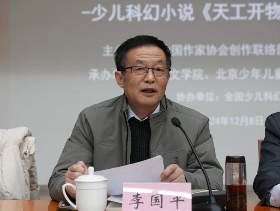 12月8日,由中國作家協(xié)會創(chuàng)聯(lián)部、陜西省作家協(xié)會主辦,陜西文學(xué)院、北京少年兒童出版社、銅川市作家協(xié)會承辦,全國少兒科幻聯(lián)盟協(xié)辦的“書寫強國重器,講好中國故事”張軍長篇少兒科幻小說《天工開物號》作品分享會在北京魯迅文學(xué)院舉行。中國作家協(xié)會創(chuàng)聯(lián)部主任彭學(xué)明,魯迅文學(xué)院常務(wù)副院長徐可,陜西省作協(xié)副主席李國平,北京少年兒童出版社社長劉衛(wèi)弘、常務(wù)副總編戴迪玲,《科普時報》社長尹傳紅,中國作家協(xié)會創(chuàng)研部副主任納楊,魯迅文學(xué)院副院長周長超,銅川市文聯(lián)(作協(xié))黨組書記、主席楊曉軍、副主席劉娜,中國科學(xué)技術(shù)出版社科幻分社社長王衛(wèi)英,北京師范大學(xué)文學(xué)院副院長、評論家張莉,《科普創(chuàng)作》執(zhí)行主編姚利芬,陜西文學(xué)院常務(wù)副院長韓霽虹,陜西師范大學(xué)教授李震,北京市作協(xié)駐會副主席周敏,山西文藝評論家協(xié)會副主席崔昕平,中國作協(xié)兒委會委員陳詩哥,少兒科幻星云獎組委會秘書長阿賢,少兒科幻作家趙華、超俠、陸楊、左文萍,本書作者張軍(筆名:小高鬼)等40余人與會。會議由北京少年兒童出版社副社長馬姍姍主持。