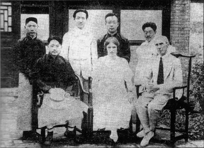 羅素在北京與講學(xué)社同仁合影。前排右起:羅素、勃拉克、蔣百里。后排右起:孫伏園、王賡、趙元任、瞿世英。照片由作者提供