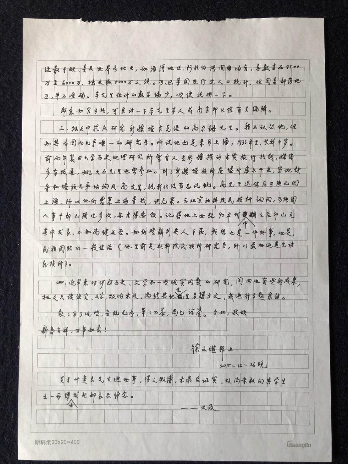 徐文堪先生2015年12月26日來信