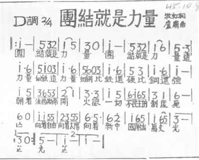 1943年,日本侵略者對(duì)晉察冀根據(jù)地實(shí)施慘絕人寰的“三光政策”,西北戰(zhàn)地服務(wù)團(tuán)面臨更加艱苦的斗爭(zhēng)環(huán)境,很多年輕戰(zhàn)友永遠(yuǎn)地留在了這片土地上。流血和犧牲并沒有動(dòng)搖他們的革命意志,反而激發(fā)了他們的創(chuàng)作靈感。為鼓舞反“掃蕩”戰(zhàn)斗,配合減租減息斗爭(zhēng),他們創(chuàng)作了小型歌劇《團(tuán)結(jié)就是力量》。大家覺得,小歌劇需要一首有力量的歌曲作結(jié)尾。牧虹趴在老鄉(xiāng)的房頂上,僅用20多分鐘就寫好了詞。距離首演僅有兩天了,誰來譜曲呢?牧虹想到了盧肅。沒想到的是,盧肅拿到歌詞后,僅用十幾分鐘,就在老鄉(xiāng)的磨盤上譜寫了旋律,一氣呵成。