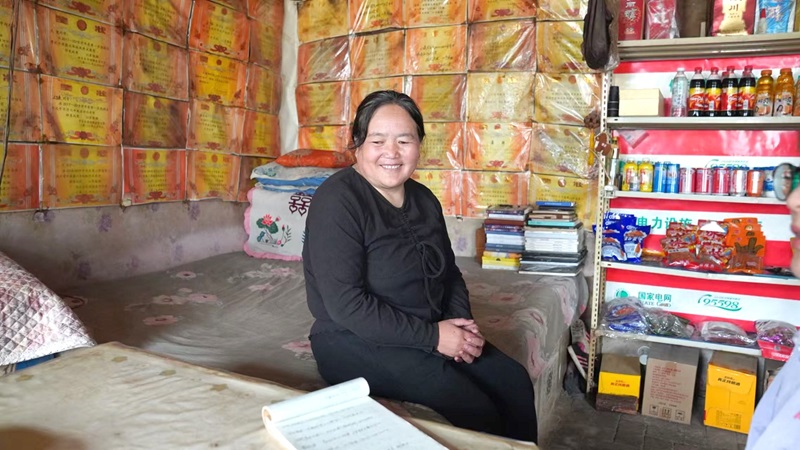 來(lái)到王對(duì)平家時(shí),王對(duì)平和丈夫已經(jīng)站在門(mén)前迎接我們。那是非常晴朗的一天,天藍(lán)如洗,空氣清透,天色將王對(duì)平家房屋背后的大樹(shù)襯得格外青翠。簡(jiǎn)樸的庭院里有一把撐開(kāi)的羅馬傘,傘后的水泥墻上用綠色的油漆寫(xiě)著“小賣(mài)部”三個(gè)字。夫妻二人請(qǐng)我和同事進(jìn)屋,那是一間干凈、整潔的農(nóng)家小商鋪,除商品陳列架外,還是一間標(biāo)準(zhǔn)的起居室。最引人矚目的是緊貼火炕的一面墻壁,那面墻上貼滿了獎(jiǎng)狀,鮮艷的橘紅色令人無(wú)法忽視。
