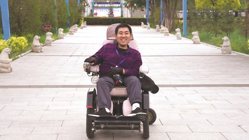 2018年初,馬駿23歲生日那天,父親刷爆信用卡,為他買(mǎi)了一輛電動(dòng)輪椅。馬駿坐在上面試了試,可以向前,也可以向后,還可以依托它整個(gè)人“站立”起來(lái)。那一刻,馬駿覺(jué)得,“身體里的每一縷血液都在歡快地跳動(dòng)”。馬駿坐著電動(dòng)輪椅,獨(dú)自走遍了縣城里每一個(gè)沒(méi)有障礙的角落。有一次,他爬上一座斜度很小的山,第一次看到了縣城的全貌。他在輪椅上再次“站”了起來(lái),大聲地喊了一聲“喂”!