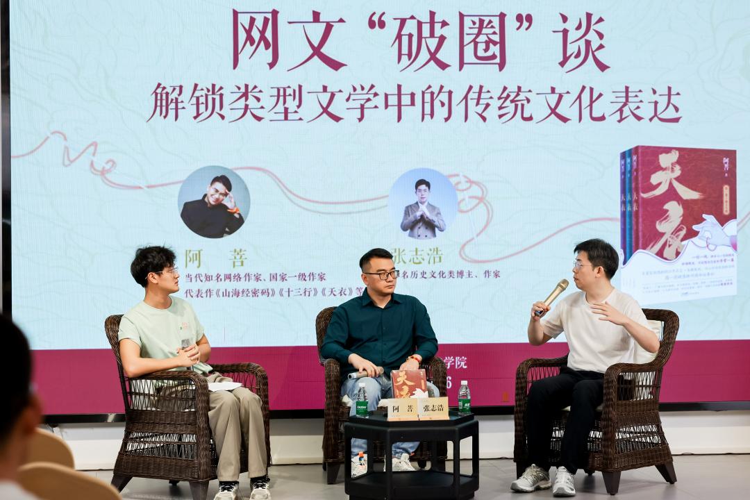8月16日、17日下午,百萬暢銷書《山海經(jīng)密碼》作者阿菩攜新書《天衣》,與B站百萬博主張志浩、阿排,分別以“網(wǎng)文‘破圈’談”和“拆解爆款網(wǎng)文邏輯”為話題,暢聊網(wǎng)絡(luò)文學(xué)與當下的大眾閱讀。