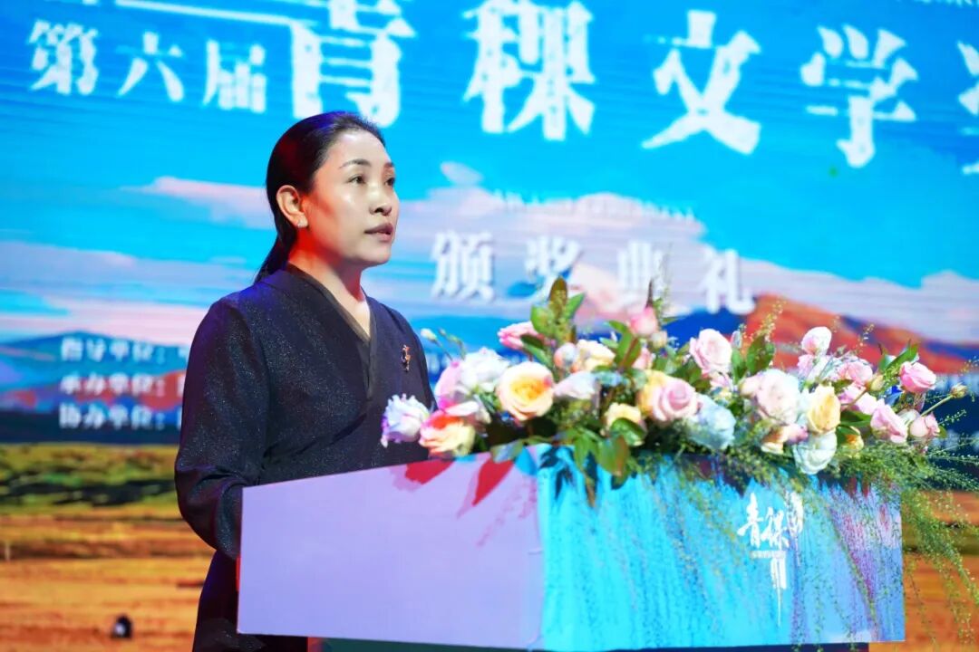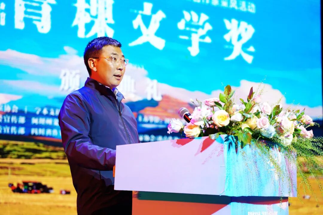 依當措在致辭中說,青稞生于苦寒,長于風霜,卻結(jié)出滋養(yǎng)生命的果實。以它命名的文學獎,亦承載著在蒼茫高原之上,寂靜生長,文字如穗,漸成信仰的精神。阿壩州地處青藏高原東南緣,是全國唯一的藏族羌族自治州。這里有“童話世界”九寨溝、“人間瑤池”黃龍、中國戶外第一山——四姑娘山、若詩若畫若爾蓋大草原、東方的魔幻世界蓮寶葉則等世界知名景點,是全球擁有世界自然遺產(chǎn)數(shù)量最多的地區(qū)之一,是生態(tài)文明示范地、長江黃河上游重要的生態(tài)屏障和水源涵養(yǎng)區(qū)。這里是多彩人文綻放地。紅軍長征在阿壩創(chuàng)造了駐留時間最長、召開重要會議最多、軍民關(guān)系最濃厚等“七個之最”,留下了“牦牛革命”的動人詩篇。全州擁有羌年等4項世界級非遺,有各類不可移動文物2132處,國家級非遺項目23項、省級非遺項目101項,被譽為“民族文化大走廊”“露天歷史博物館”。這里,是文旅發(fā)展引領(lǐng)地。黃龍成功入選世界自然保護聯(lián)盟綠色名錄,成為全球最佳自然保護地之一,桃坪羌寨是全省唯一的世界最佳旅游鄉(xiāng)村。誠摯邀請各位作家老師們,常來阿壩行走、采風、書寫。讓你們的筆觸,深入牛羊漫步的牧場、阡陌縱橫的山村,真正走進各族群眾火熱的現(xiàn)實生活,走進高質(zhì)量發(fā)展的生動實踐,講述阿壩的故事,讓更多的人通過文學作品了解阿壩、認識阿壩、走進阿壩、愛上阿壩。