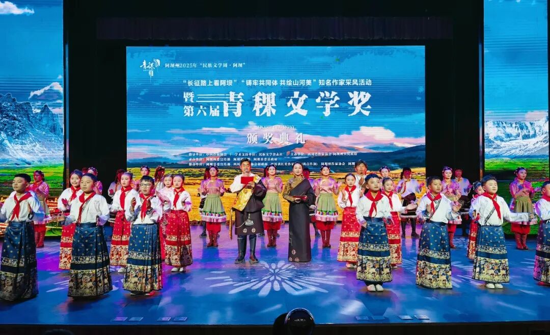 2025年“民族文學周·阿壩”活動期間,由民族文學雜志社提供學術(shù)支持,四川省作家協(xié)會、四川阿壩州人民政府主辦,阿壩州委宣傳部、阿壩州文聯(lián)、阿壩縣委、縣政府承辦,阿壩縣委宣傳部、四川省作家協(xié)會創(chuàng)聯(lián)部、四川省紅星作家協(xié)會(省直作協(xié))、阿壩州作家協(xié)會、阿壩縣文聯(lián)協(xié)辦的第六屆青稞文學獎頒獎典禮于9月8日晚在四川阿壩州阿壩縣成功舉辦。中國作協(xié)黨組成員、書記處書記李一鳴,《民族文學》主編陳亞軍、副主編朱鋼,四川省人大常委會委員、省人大監(jiān)察和司法委副主任委員、中國作協(xié)南亞國際文學交流中心執(zhí)行主任、四川省作協(xié)副主席侯志明,四川省作協(xié)黨組副書記魯娟,中共阿壩州委常委、宣傳部部長依當措,阿壩州委常委、阿壩縣委書記馮崢勇,阿壩州政協(xié)副主席何曉兵,阿壩州文聯(lián)黨組書記、主席阿郎,阿壩縣委副書記陳波,阿壩縣委常委、副縣長唐建勇,王懷林、范穩(wěn)、馬麗華、魯若迪基、尼瑪潘多、譚五昌、衣向東、巴久烏嘎、王麗一、楊國鋒等知名作家、第六屆青稞文學獎獲獎作家,以及阿壩州作家代表、阿壩縣機關(guān)干部、學生群眾代表等齊聚一堂,共同見證這一文學盛會。