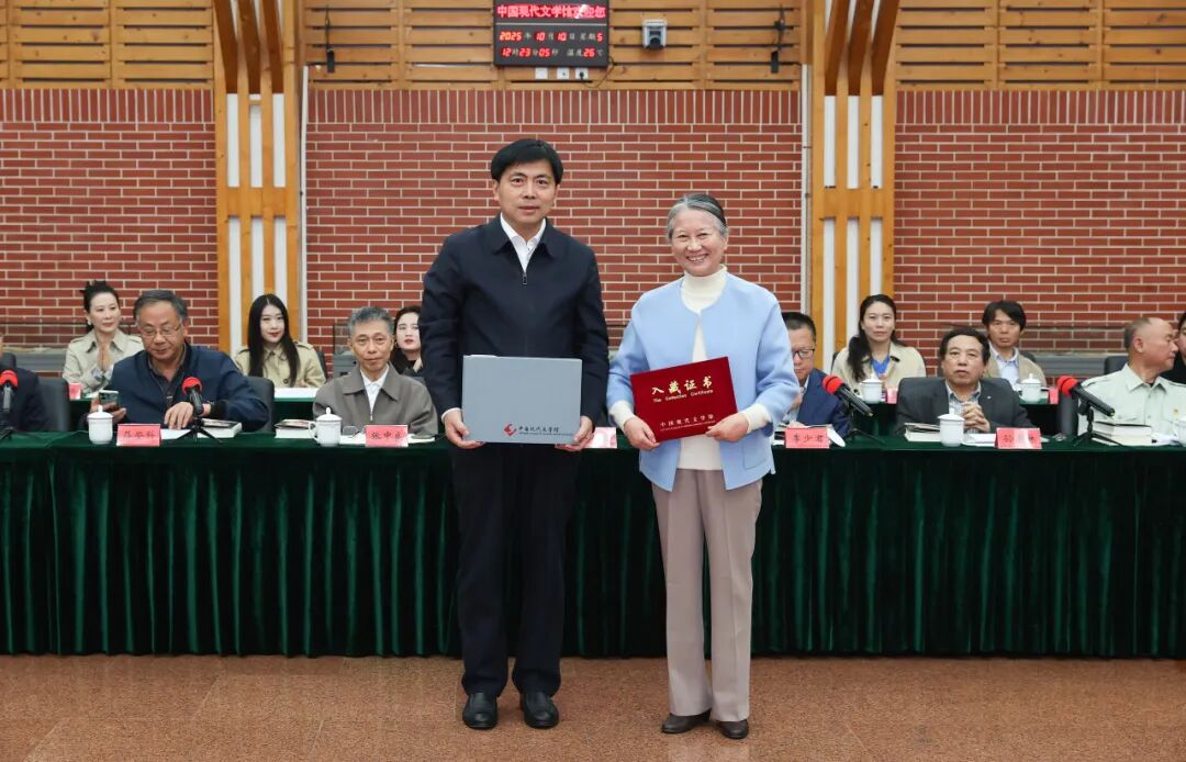 座談會(huì)上,鄭蘇伊代表臧克家親屬向中國(guó)現(xiàn)代文學(xué)館捐贈(zèng)了1000余件手稿、實(shí)物,368本名家簽名贈(zèng)書等珍貴文獻(xiàn)。畫家紀(jì)清遠(yuǎn)、李培禹捐贈(zèng)了畫作《詩(shī)人臧克家》。中國(guó)現(xiàn)代文學(xué)館常務(wù)副館長(zhǎng)王軍接受捐贈(zèng),并頒發(fā)入藏證書。