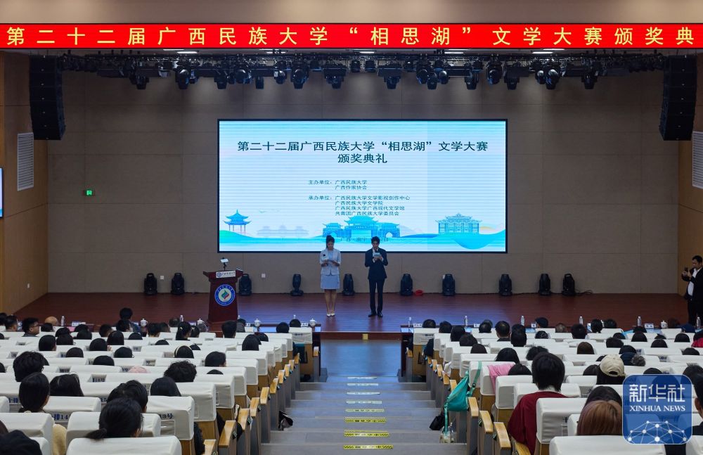 第二十二屆廣西民族大學(xué)“相思湖”文學(xué)大賽頒獎典禮11月2日在相思湖校區(qū)文化研習(xí)基地報告廳舉行。本次活動由廣西民族大學(xué)和廣西作家協(xié)會聯(lián)合主辦,廣西民族大學(xué)文學(xué)影視創(chuàng)作中心、文學(xué)院、廣西現(xiàn)代文學(xué)館、校團委共同承辦。
