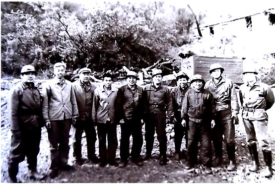 陳建功(右五)和礦工們在一起