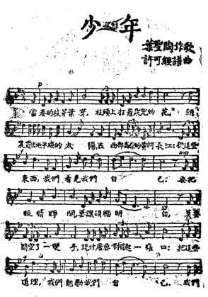 《少年》歌譜