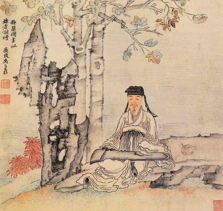 清禹之鼎繪《櫟園撫琴圖》