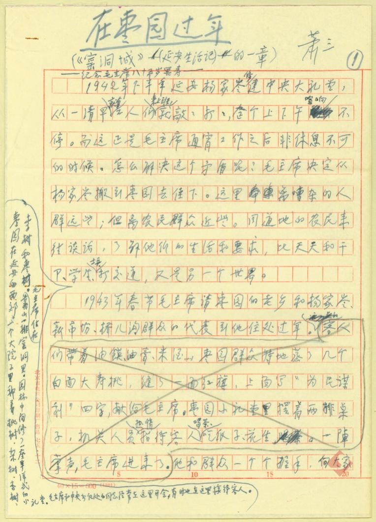 蕭三《在棗園過(guò)年》手稿首頁(yè)
