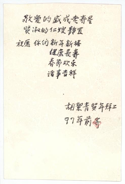 胡絜青致李靜宜、盛成賀年卡1993、1997、2000